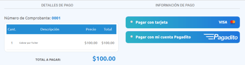 Una vez enviado, tu cliente hará click e inmediatamente será redireccionado a la plataforma de pago que se verá como se muestra a continuación:
